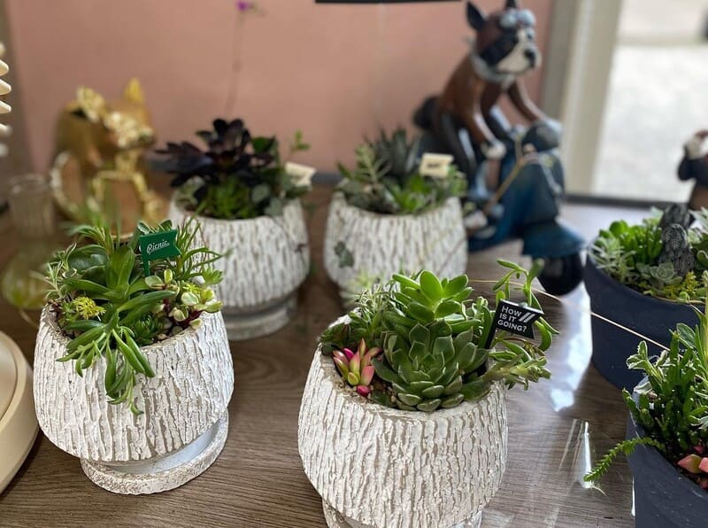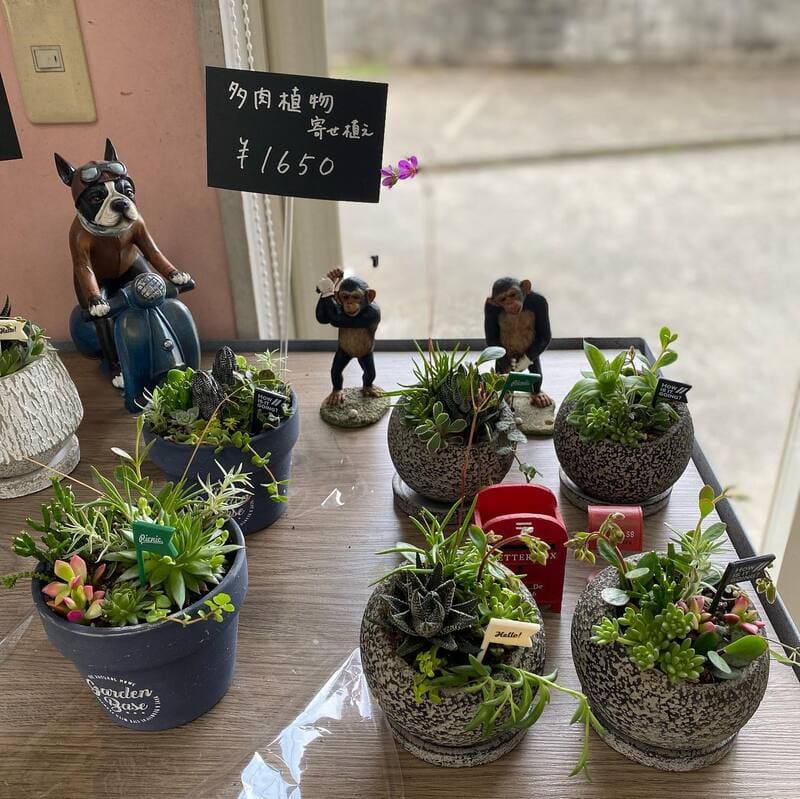 お花・ドライフラワー以外にも、多肉植物の寄せ植えやピクチャーフレームなどのインテリアの販売も行っております。